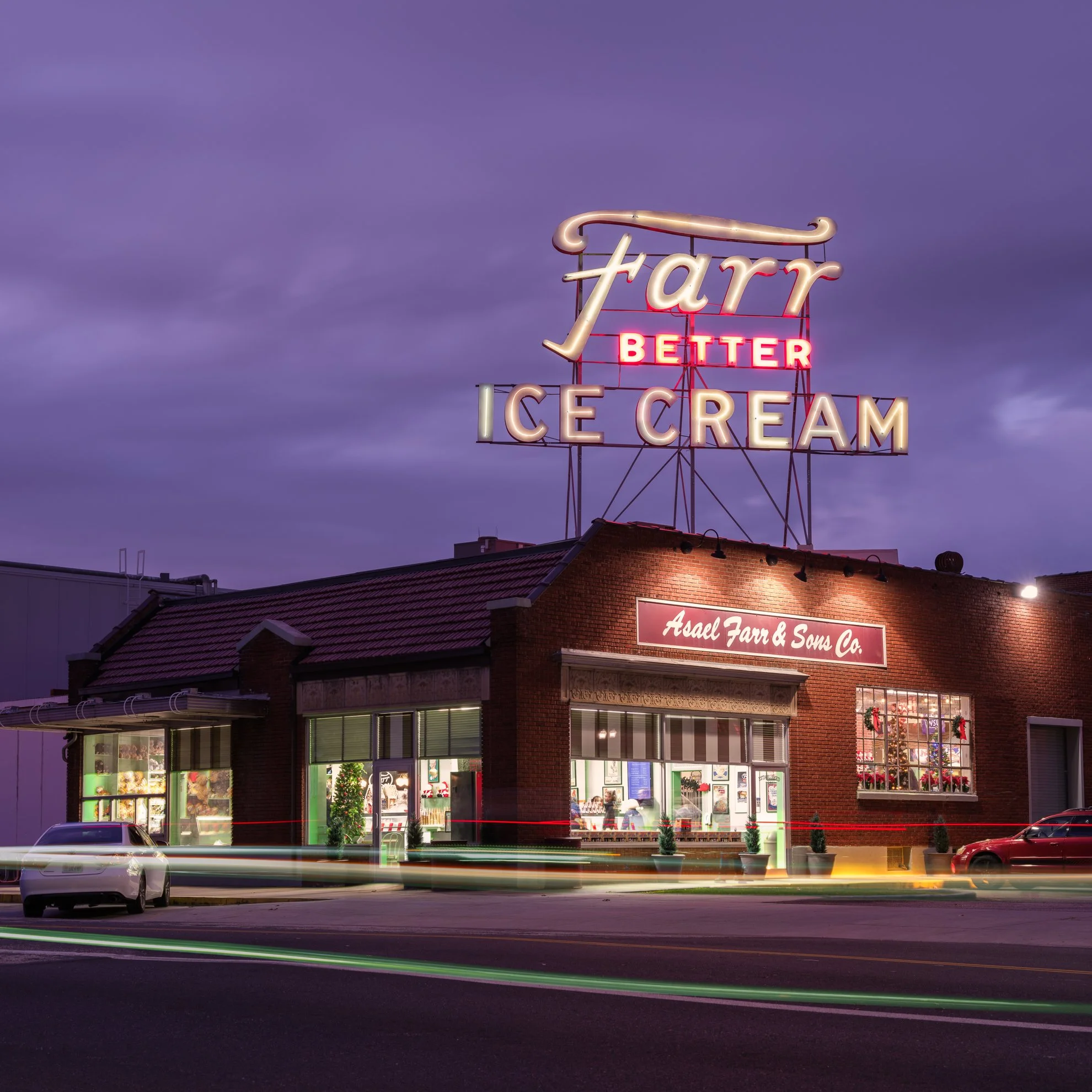 Another staple in Ogden is Farr’s Ice Cream, established in 1921. It has been a local favorite for a long time, and it will be for a long time after I am gone. This year I nearly got the perfect photograph of it, the kind you do not plan and do not deserve. One early morning after a fresh snow, blue hour arrived and someone forgot to turn off the signs and the interior lights. The place glowed like a postcard.